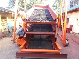 Vibrating Screen is used to separate materials into various sizes for further processing. The materials is separated by passing through a vibrating screen box which has a number of different sized screens, or meshes, through which the material falls through like a sieve, and to the attached conveyors to become end products.